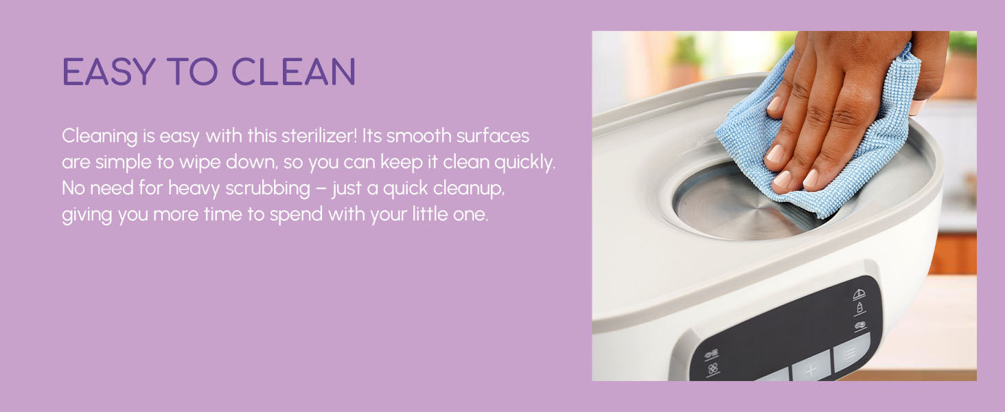 Eliminates 99.9% of germs, ensuring bottles, pacifiers, and accessories are safe for your little one.